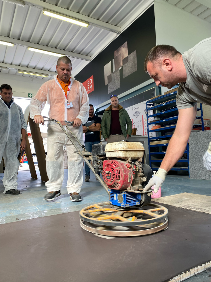 Isoplam® practical-theoretical training courses for resin or stamped concrete flooring installers. Concrete printing courses and concrete installation courses.