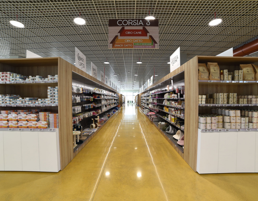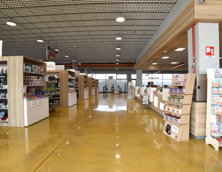 Pavilux Overlay, pavimento industriale basso spessore colore Miele. Ciam Pet-Store, Ascoli Piceno 05