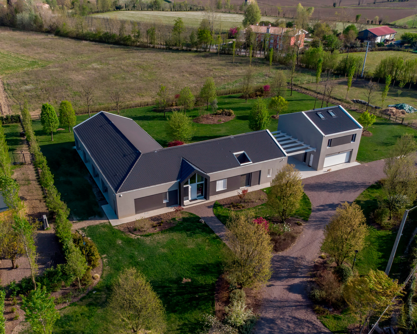 Project: The villa in Breda di Piave, designed by Folla Progetti, beautifully exemplifies the harmony between architecture and the surrounding landscape. The flooring in Deco Nuvolato by Isoplam, used both indoors and outdoors, creates a seamless connection between interior and exterior spaces, emphasizing the interaction between nature and the built environment. Outside, the Deco Nuvolato Grip flooring, with its non-slip surface, ensures safety and practicality, making the spaces accessible and functional even in adverse weather conditions. Situated on a large plot that blends lawn and woodland, the villa's L-shaped design reflects the local rural architecture. The choice of a natural lime-based plaster for the exterior walls recalls the colors of the landscape, while the Deco Nuvolato flooring enhances the visual flow, creating a welcoming atmosphere that celebrates the beauty of the countryside.